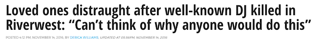 This is the story of an unsolved murder of a man killed outside of his house by gunshot, on the most suspicious of days. Notice he was 33. Derek sent me an email about this earlier today because it happened in his community and he just caught wind of it.