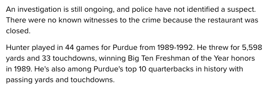 link : 33 44 46 58 59 | Former Purdue QB, Eric Hunter, killed at fast food parking lot, July 5, 2017