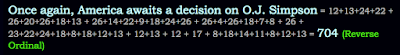 See my oldest work on OJ. His 3 top attorneys, all with 74 name gematria.