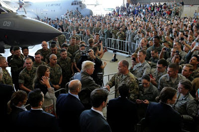 President Trump greets members of the U.S. military at Yokota Air Base. REUTERS/Jonathan Ernst